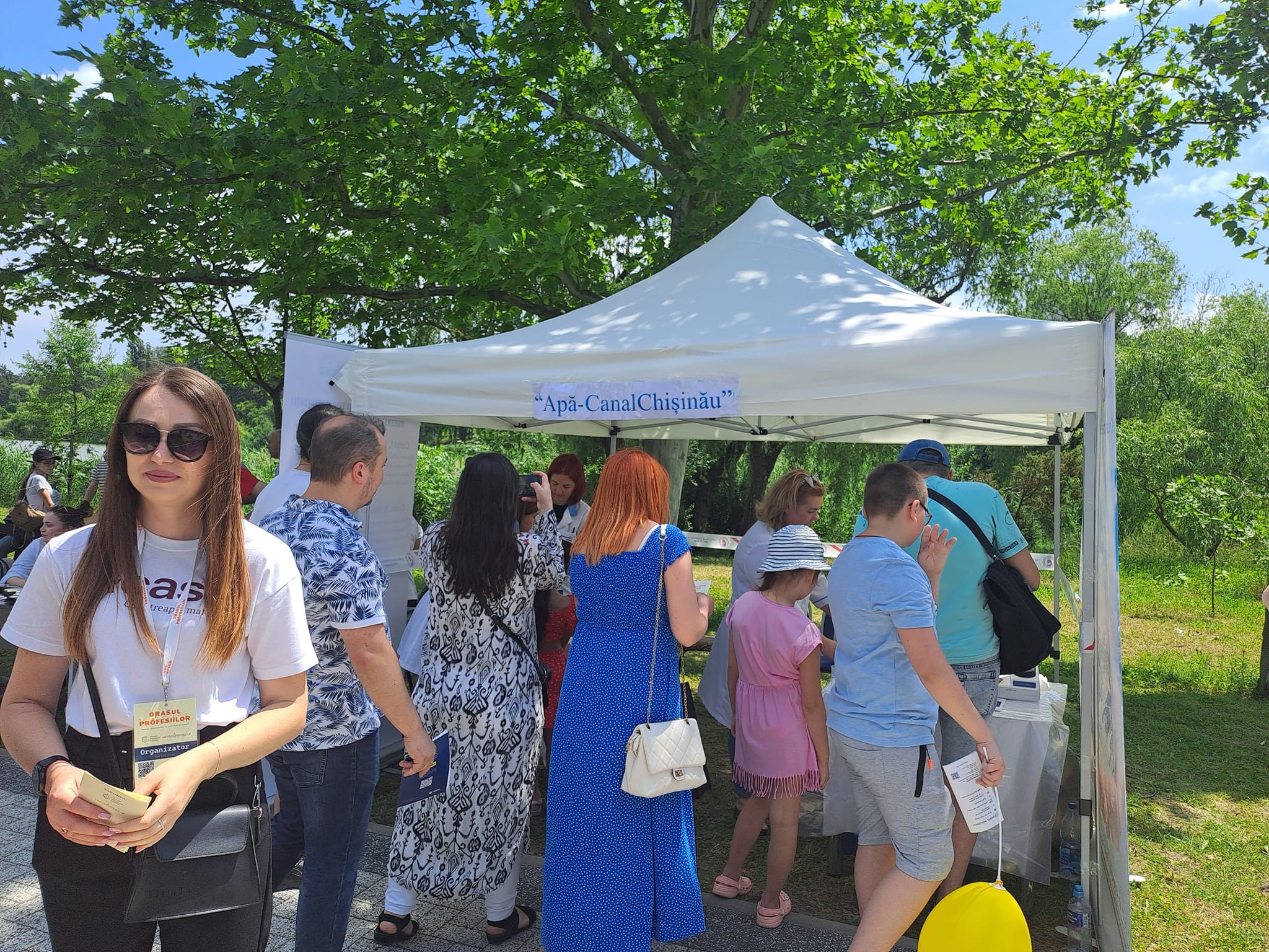 Zeci de copii interesați și activi la standul S.A. ,,Apă-Canal Chișinău” pentru a explora profesia de inginer-chimist!
