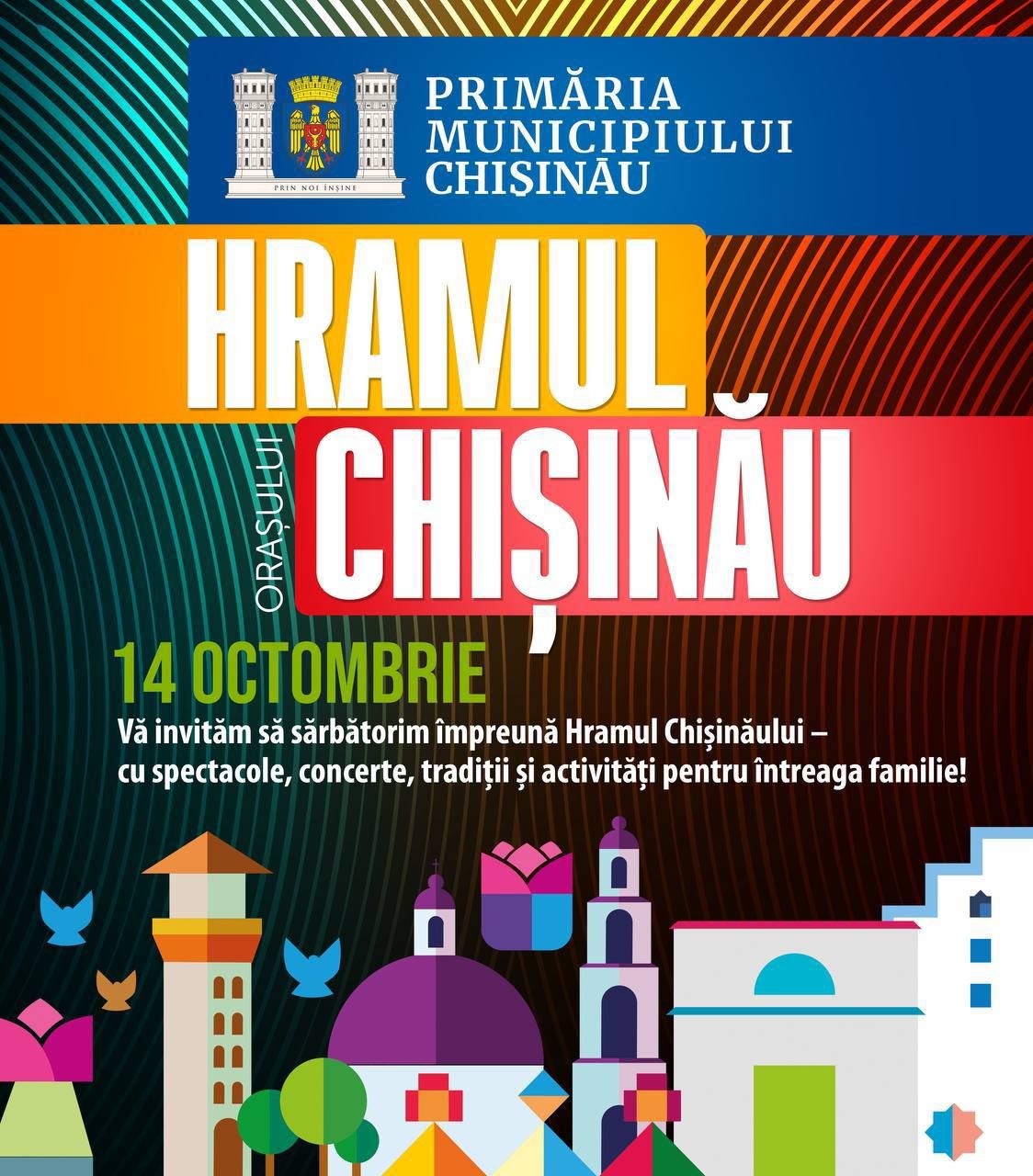 Primăria Chișinău invită cu drag chișinăuienii și oaspeții capitalei să sărbătorim împreună istoria, cultura și tradițiile orașului nostru de Hramul Chișinăului, pe 14 octombrie.